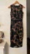 Chic midi dress with black floral design. Sleeveless and elegant. Perfect for special occasions.