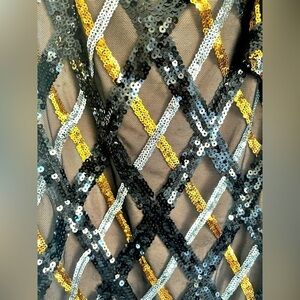 NWOT Dress the Population Black Mesh Overlay Sequin Skirt Size Extra Small.
