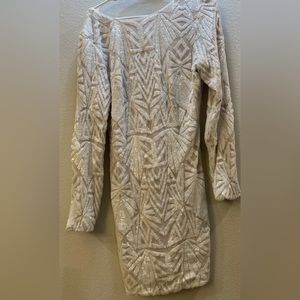 NWOT Dress the Population Lola White Art Deco Sequin Mini Dress, Size XL