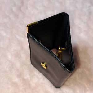 Beautiful new without tags. Black leather bifold wallet. 6 credit card slots and 3 slip slots. Front flap has a gold tone detail on the corners to protect the corners.