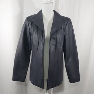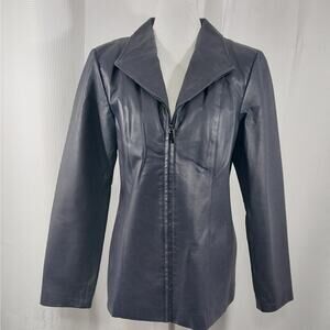 From East 5th comes this snappy cool lavender purple- almost with a blue cast to it- genuine leather jacket, coat! Featuring a full zipper front and chic tailoring, hidden front pockets, and is fully lined in black poly satin! Gorgeous! Size M, a gift never worn! ***NEW Without Tags, and Guaranteed Superb by Lily @HauteClub!*