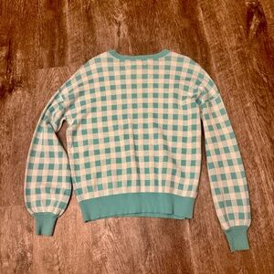NWOT EDINBURGH KNITWEAR Turquoise White Plaid Sweater S