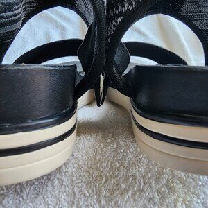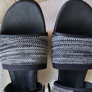 NWOT EILEEN FISHER STRETCHY FABRIC BLACK/WHITE KNIT SANDALS SIZE 7M