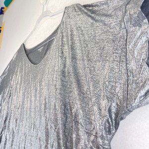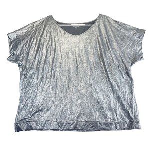NWOT EILEEN FISHER Womens 2X Plue Linen Metallic Silver Pullover Tunic Top Party