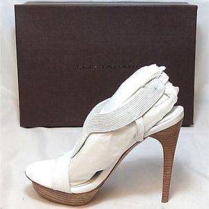 NWOT - ELIE TAHARI Women's Cleopatra Platform Sandal -White Leather -
