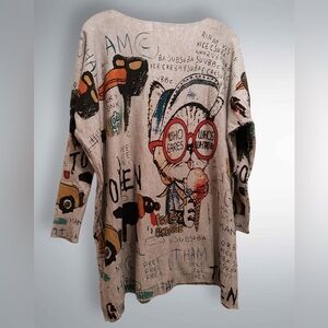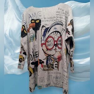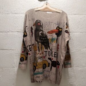 NWOT ELLAZHU Basquiat-Inspired Graphic Graffiti Wearable Art Oversized Sweater L