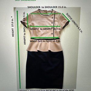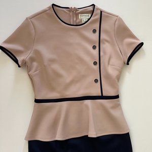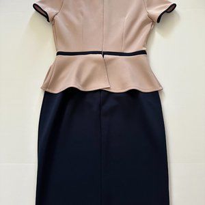 NWOT _ ENFOCUS STUDIO Women's Color-Block Crewneck Short Sleeve Ruffle Designed Slim Bodycon Business Pencil Back Zip Simple but Elegant Office and Casual Women's Dress; Color: Pink & Black; Size: 4; NWOT