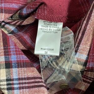 NWOT Cotton plaid flannel top. Ruffle detail. Burgundy shade.