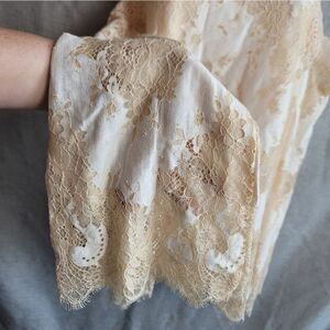 Stunning cold shoulder top, with lace detail throughout. High neckline with button closure on the back. Large sleeves. NWOT.