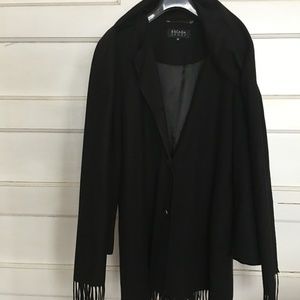 NWOT ESCADA SPORT BLACK COAT FRINGES & SCARF sz S