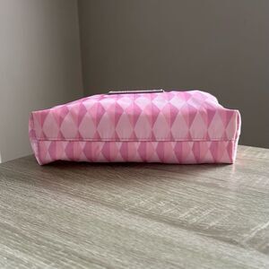 This Estee Lauder cosmetic / makeup bag features a chic geometric design in a soft pink hue, offering a stylish way to organize your beauty essentials. The bag's satin-like finish and rounded shape add a touch of elegance, while the zipper closure ensures your items are securely stored. Ideal for travel or daily use, this bag combines functionality with a fashionable flair 💕😍💕