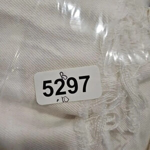 These are a pair of women's size 30 ETICA white cutoff shorts. They are made of 75% cotton and 25% Tencel and have a relaxed fit. The shorts have a raw hem and a Zip closure