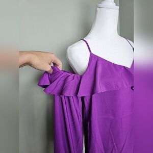 NWOT EXPRESS Off The Shoulder Balloon Sleeve Faux Wrap Ruffle Top AMETHYST XS