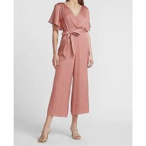 NWOT EXPRESS Satin Flutter Sleeve Culotte Jumpsuit champagne Color Sz XXS
