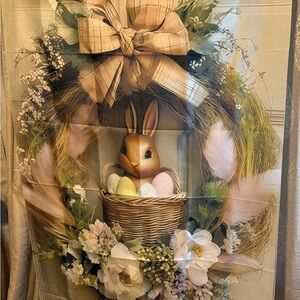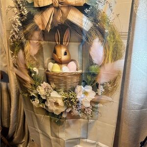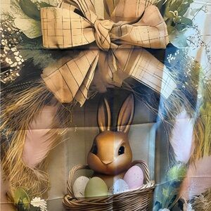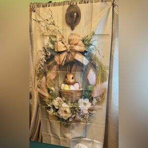 Has four grommets, two at the top and two at the bottom and some twine to hang it.