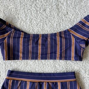 NWOT Eberjey Girls 2 piece Bikini Swimsuit - Navy w brown/pink stripes - size 4