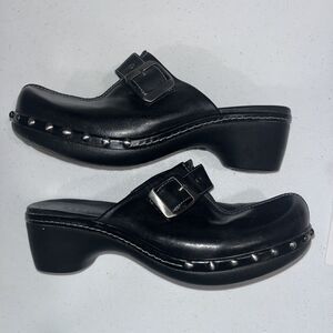 NWOT Ecco Chunky Y2k Studded Black Silver Leather Clogs Mules Buckles 37 6.5