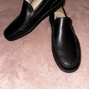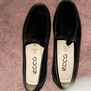NWOT Ecco men’s black leather slip on loafers 40 6 office business casual