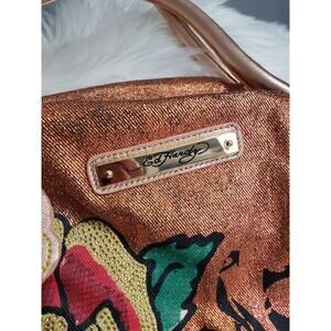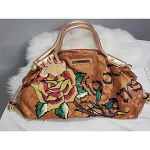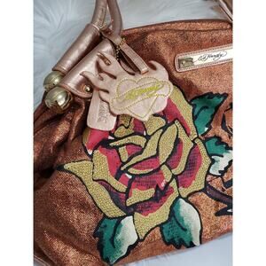 NWOT Ed Hardy Tyla Hobo Bag Roses Metallic Oversized Y2K Bag Vintage Bowler