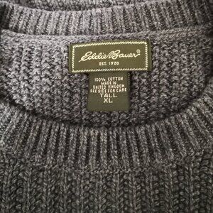NWOT Eddie Bauer 100% Cotton Crew Neck Sweater Charcoal Gray Size XL Tall
