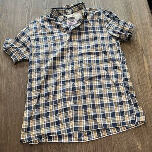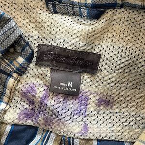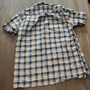 NWOT Eddie Bauer Blue Tan Plaid Short Sleeve Button Front Shirt Size M