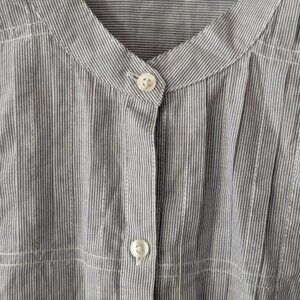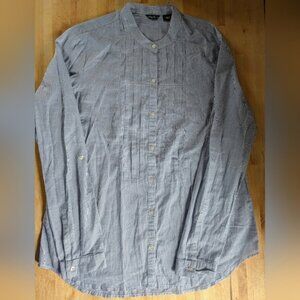 NWOT Eddie Bauer Button Up Blouse Navy White with Band Collar and Pintucks Large