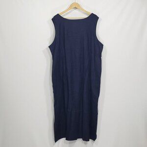 NWOT Eddie Bauer Navy Blue Linen Sleeveless Long Shift Dress Size XXL