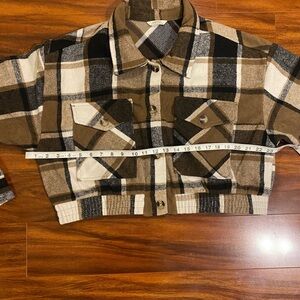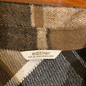 NWOT EditHer Flannel Brown Plaid Button-Up cropped Jacket XL Cotton blend New.