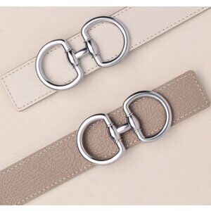 NWOT Edited Pieces Reversible HorseBit Buckle Belt 30"-35" Ecru Taupe