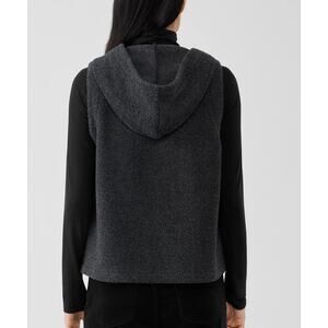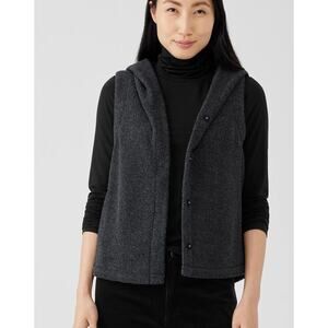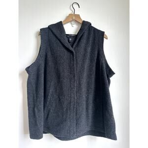 NWOT Eileen Fisher Boucle Wool Knit Hooded Vest Gray Black 2x Plus