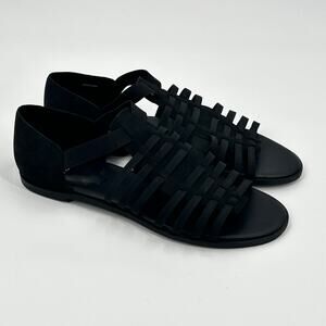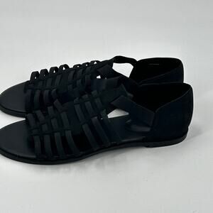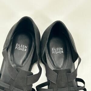NWOT Eileen Fisher Rato Honey Leather Sandals 5.5 Flats Fisherman Black Travel