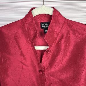 Eileen Fisher Vine Red Textured Silk Blouse Chinese Style Relaxed fit