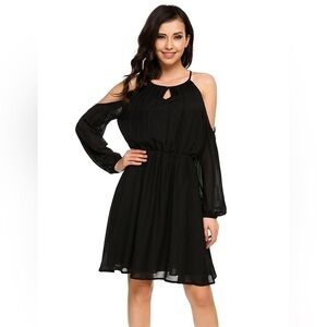NWOT Elegant Black Cold Shoulder Keyhole Open Back Dress