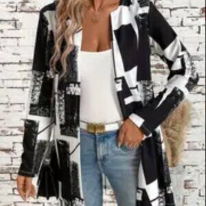 NWOT Elegant Black & White Mid-Length Jacket - Outerwear for Fall Size Large
