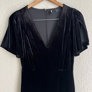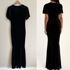 NWOT Elegant Evenings Black Velvet Flutter Sleeve Trumpet Maxi Dress