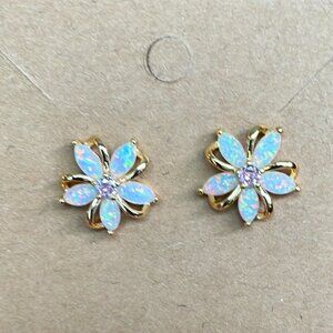 NWOT Elegant Gold and Synthetic Opal Flower Earrings Studs