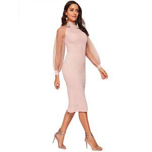 NWOT- Elegant Long Mesh Sleeve Dress for Party Pink