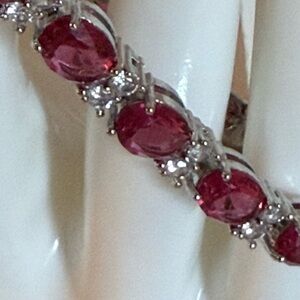 NWOT Elegant Women’s Synthetic Cubic Zirconia Red Color Bracelet SilverTone 7.6”
