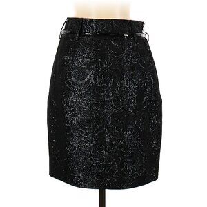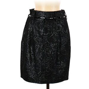 Elie Tahari Black Metallic Floral Textured Belted Pencil Skirt