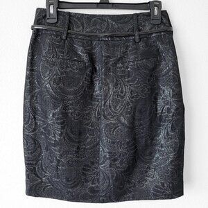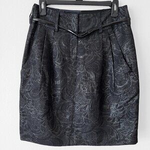 NWOT Elie Tahari Black Metallic Floral Textured Belted Pencil Skirt