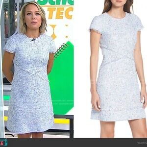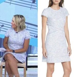 NWOT Eliza J Light Blue Tweed Sheath Dress Eyelash Fringe Trim Size 12