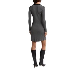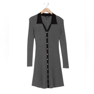 A contrast collar and placket pop on this long-sleeve sweater dress knit from soft ribbed yarns in a gently flared silhouette.