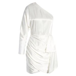 NWOT Elliatt Saronic One Shoulder Long Sleeve Draped Mini Dress in White Sz. S