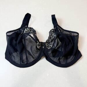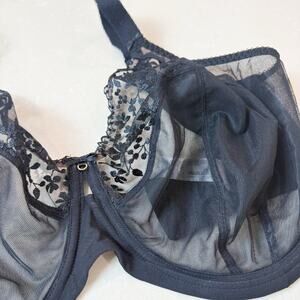 NWOT Elomi Zarla Stretch Banded Bra Embroidered Lace Black 36O