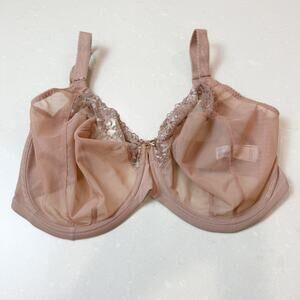 NWOT Elomi Zarla Stretch Banded Bra Embroidered Lace Café Au Lait Tan 36O