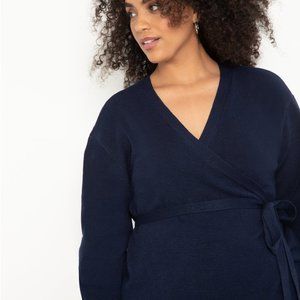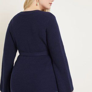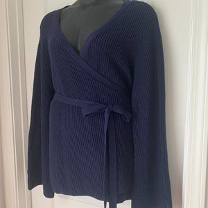 True wrap rib sweater. Easy fit. Flare long sleeve. Soft & stretchy. Separate waist ties attached to sweater. Hits at the hip. Size 26/28