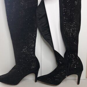 NWOT Eloquii Sequin Amelia Over the Knee Black Heeled Boots 12W