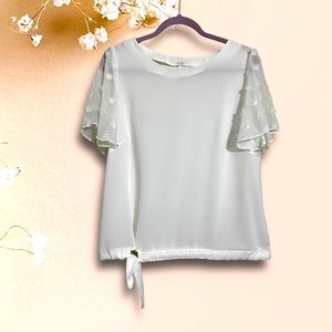 NWOT Emery Rose Swiss Dot Butterfly Sleeve Knot Hem Blouse Size L (8/10)