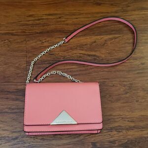 NWOT Emporio Armani Coral Pink Leather Chic Girlcore Edgy Girly Work Gold Chain Crossbody Bag