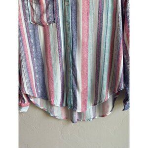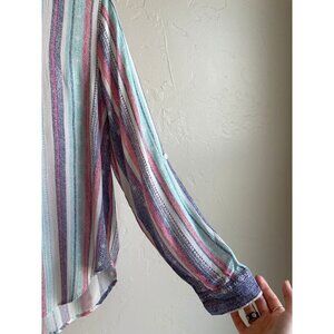 NWOT En Crème Striped Button Up Bohemian Southwestern Print Shirt Size Medium Ca